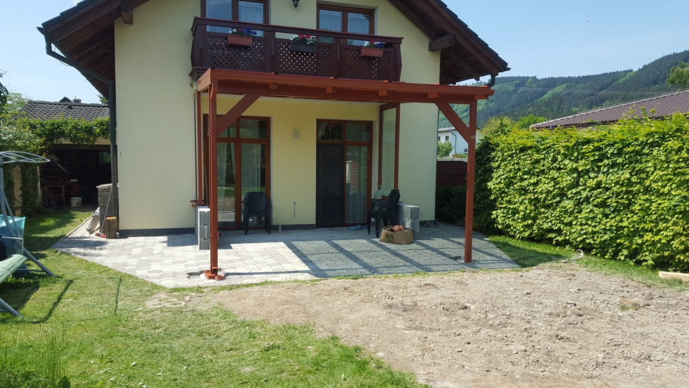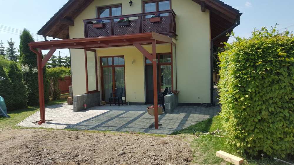 A képen látható Sunwood előtető érdekessége, hogy egy rosszul tervezett szűk kis télikert helyére rendelte a tulajdonos. Műszakilag az erkélylemez homlokzati részétől lett indítva a teraszfedés, amit két oszlop tart a másik oldalon. Az alumínium vázas szerkezet rejtett csavarozással lett összeállítva, ezért a szerkezet felülete homogén. Az esőcsatorna szépen illeszkedik a tetőhöz, és a függőleges vízelvezetés is megoldott a támasztó oszlop vonalában. A tetőüvegezésnél több szempontot is figyelembe vettünk. A Sunex multifunkciós üvegnek köszönhetően a nap melege nem zavarja a háziakat és a vendégek az előtető alatt pihenve. Valamint a tulajdonosnak lehetősége van a későbbiekben az előtetőt átalakítani, három évszakos télikertté. Első gondolatként az erkélylemez alatti terület kapott két oldalról szélfogó üvegfalat. Természetesen ezzel a megoldással, akár a későbbiekben teljes mértékben megoldható a terasz beépítése.