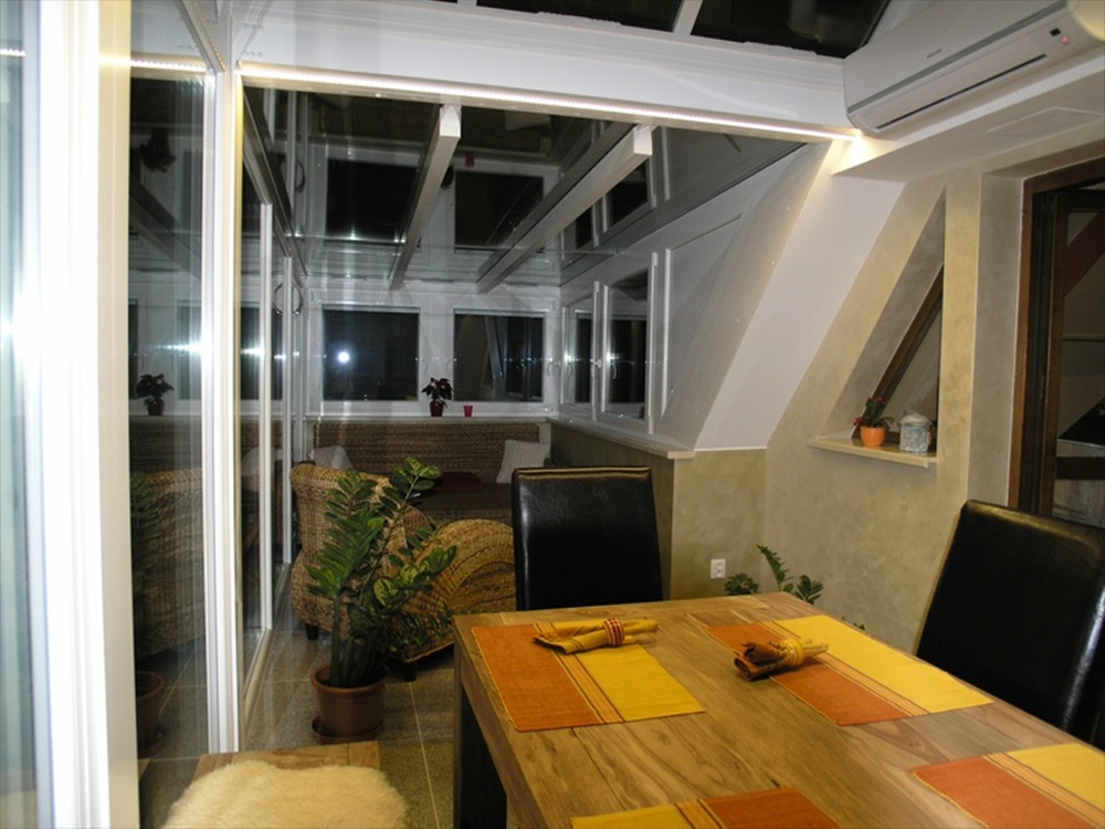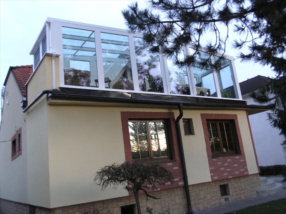 Az előmérésnél és helyszíni szemlénél nyilvánvalóvá vált, hogy nem kis feladat elé állítottak bennünket, bár egy régebbi munkánál már találkoztunk ehhez hasonló helyszínnel. Ebben az esetben viszont elég keskeny volt a terasz a családi ház első emeletén, melyet egyáltalán nem is tudtak kihasználni. Igazság szerint eddig teljesen haszontalan volt számukra, ezért döntöttek úgy, hogy beépítik, így újabb, egész évben kihasználható teret nyernek. Pihenőszobának rendezik be, rattan ülőgarnitúrával, valamint ide tervezik a karácsonyfát.