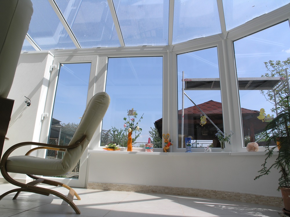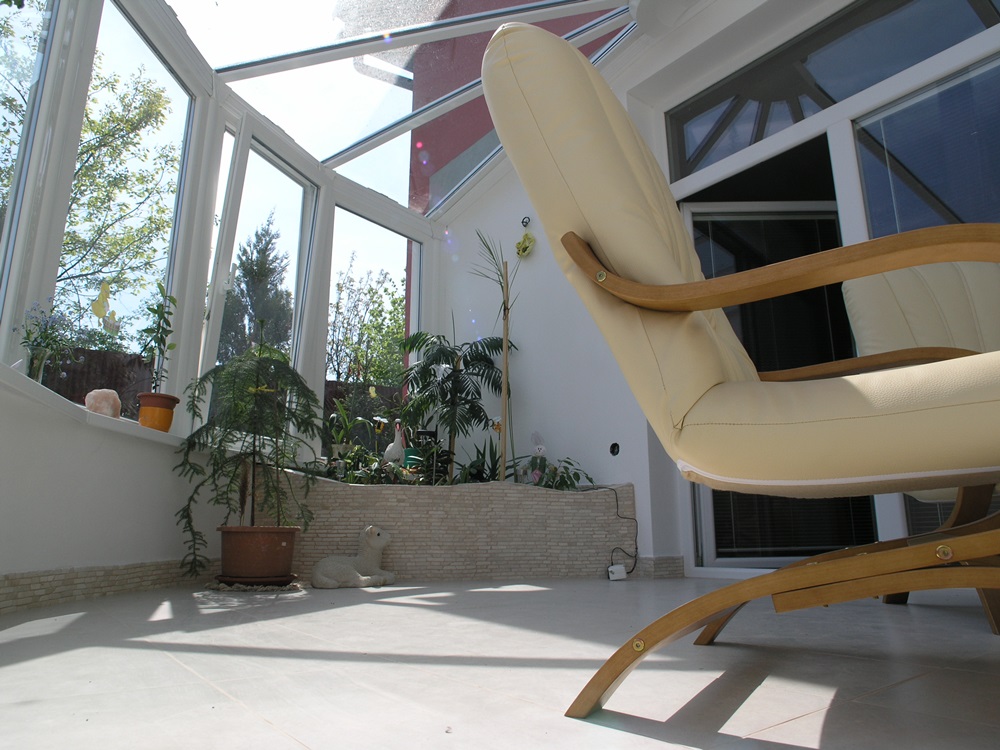 Weboldalunkra rátalálva és azon belül a fotóinkat nézegetve ötlött fel ebben a házaspárban, hogy az éppen rekonstrukció alatt levő házukat bővíthetnék télikerttel, így nyerve egy tágas, napfényes nappalit. Érdekessége, hogy az egyik sarokban egy beltéri “kiskertet” alakítottak ki, ahol nagyon jól érzik magukat növényeik. Elmondásuk szerint, ittlétükkor a kisunokák kedvenc játszóhelye is lett egyben a télikert.
