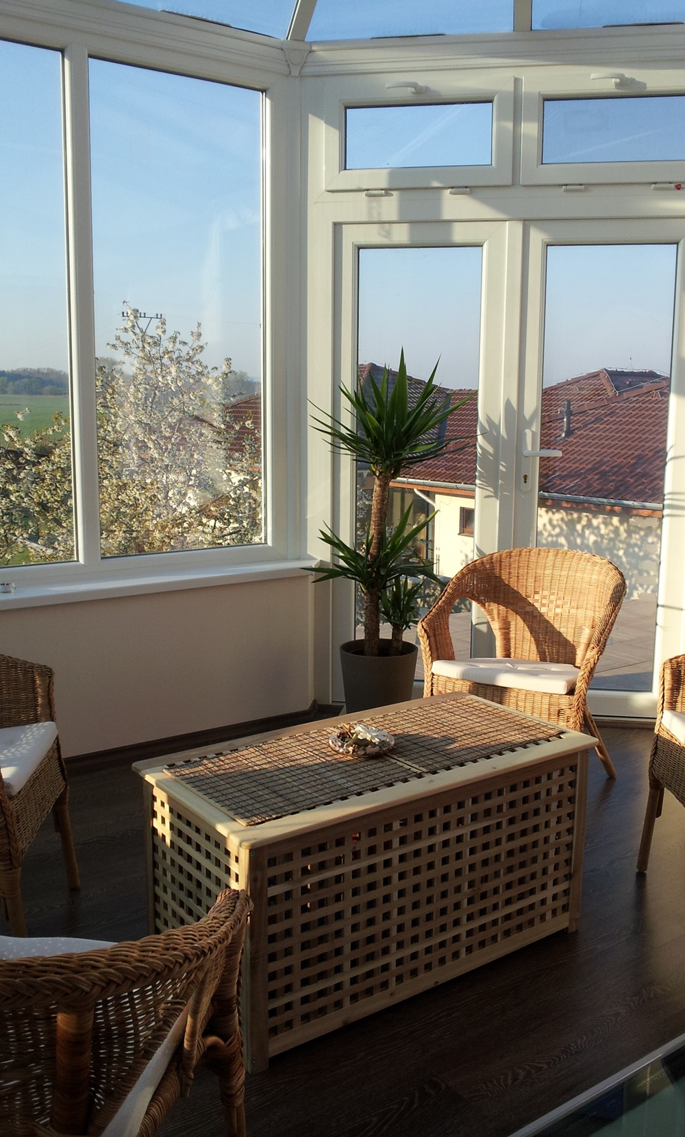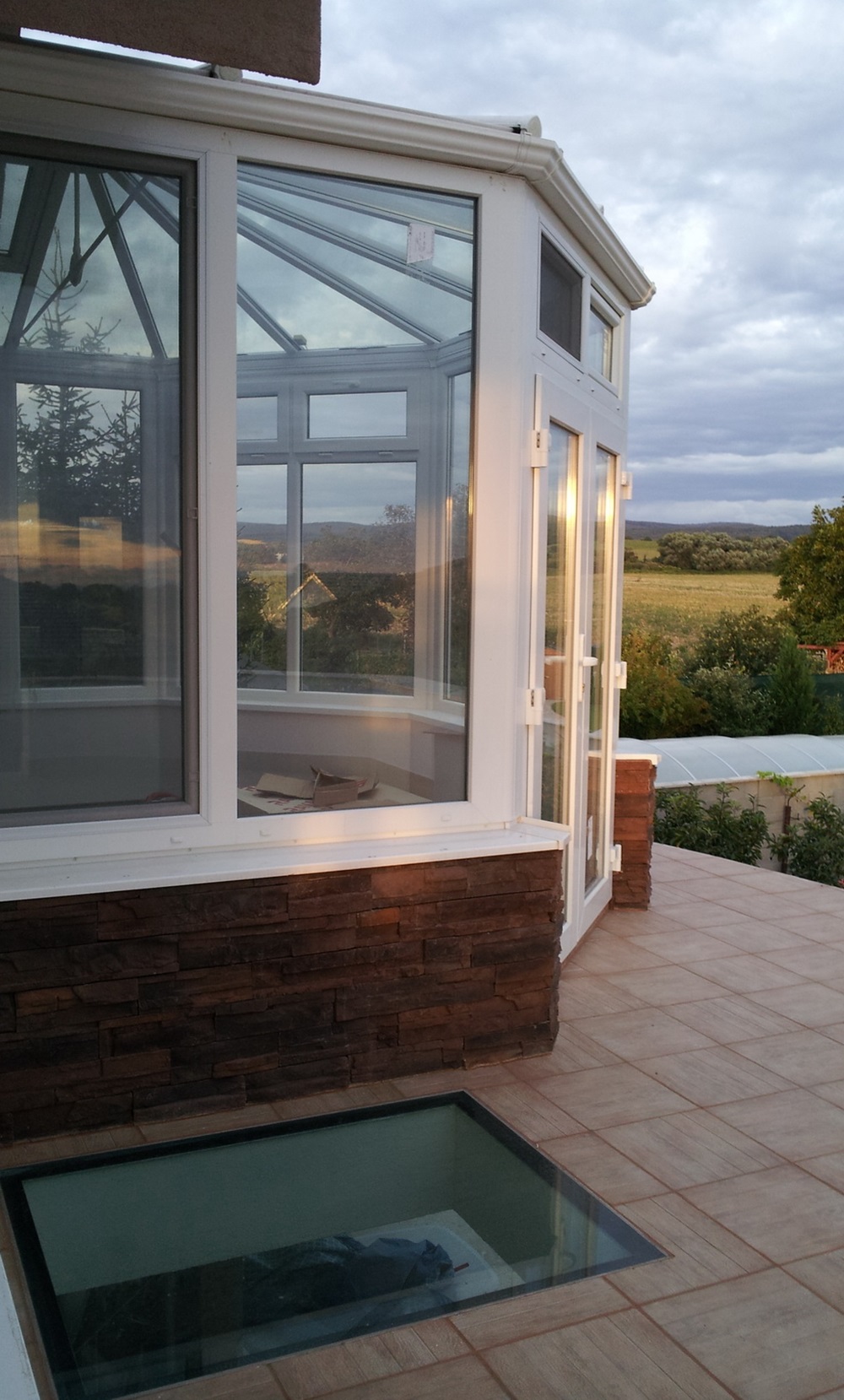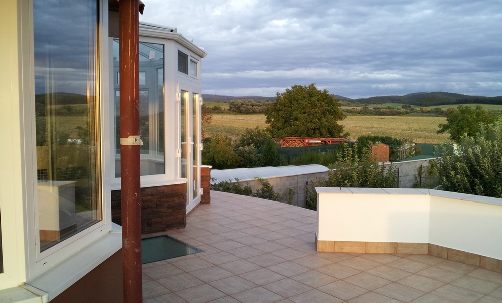 Ez a télikert egy picit „furán különleges“. A tulajdonos a 2010-es Coneco kiállításon találkozott velünk. A télikert tervezése elég hosszadalmas procedúra volt, mivel a vevő nem tudta eldönteni, mire fog szolgálni a télikert és milyen télikertet szeretne. Az építkezési előkészületek alatt az elképzelése többször változott, többek között a ház külső szigeteléséről és annak vastagságáról azon a helyen, ahol a télikert a házfalhoz csatlakozik. Mivel ekkor a télikert már gyártás alatt volt, alumíniumból kellett konzolokat gyártatnunk, amelyek „köztes“ megoldásként szolgáltak a házfal és a télikert között. A tulajdonos elégedett volt a hozzáállásunkkal és a gyors megoldással. Végül a télikert olyan pihenő- és összekötőhelység lett, mely összeköti a fürdőszobát, hálószobát és teraszt. A télikert megépítésével a tulajdonos jól ki tudja használni az így nyert fény-többlet előnyeit.