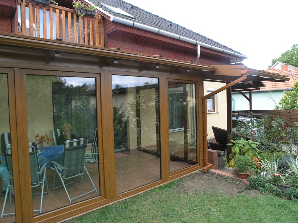 - oldalfal: PVC Rehau rendszer, statikai sorolókkal, aranytölgy színben, szemből középen felnyíló bukó-toló ajtórendszerrel, oldalról bejárati és erkélyajtóval.