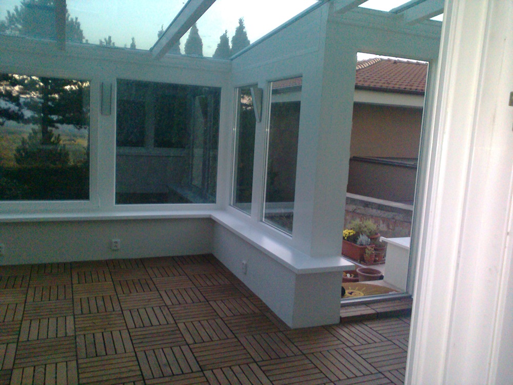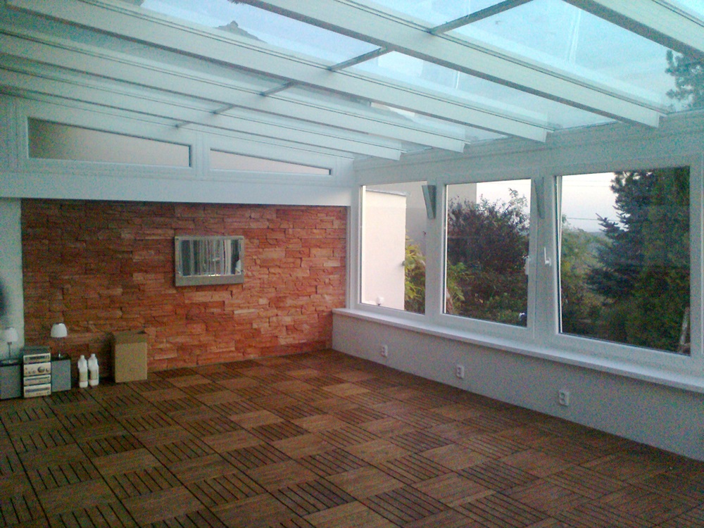 Kedves hölgy keresett meg bennünket kérdésével, hogy mit javasolnánk teraszának beépítésére. A helyszíni szemle után látványtervet készítettünk, ami azonnal elnyerte tetszését. Ezt a télikertet kulcsra készítettük, mivel mi biztosítottuk a kőművesmunkát, a külső árnyékolást és GEMINI Deck fapadló-burkolást is. Pillanatnyilag a télikert még nincs teljesen berendezve, de a tulajdonos hölgyet már így is jó érzéssel tölti el.