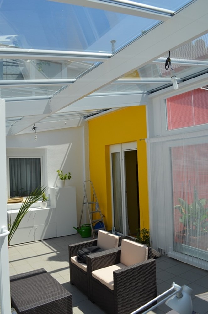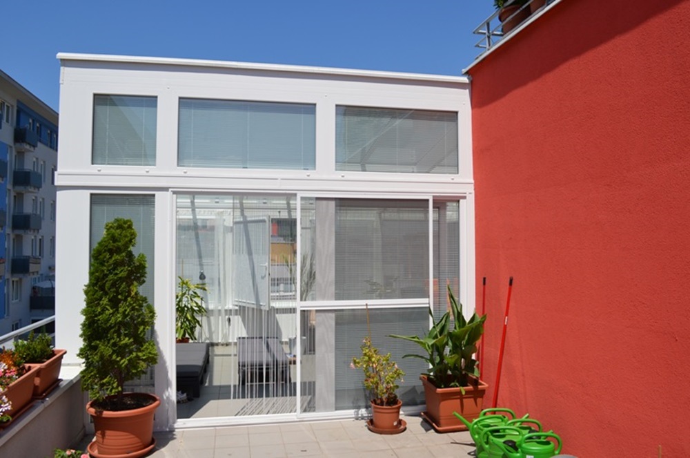 Kedves emlékek fűzik cégünket ennek a télikertnek az építéséhez. A tulajdonosok meg szerették volna szüntetni a terasz egy részét, mivel feleslegesen nagy volt és nem volt kihasználva. A terület egy lakó-komplexum 6. emeletén van. Az egyik fele továbbra is nyári teraszként szolgál, az újonnan felépített télikert a terasz másik részén biztosítja a zord időjárási viszonyok alatt is kellemesen eltölthető perceket.