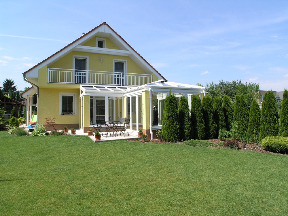 Emailban érkezett egy árajánlatkérés – olyan lakótélikerttel szeretnék bővíteni családi házukat, amely nem fog eltérni a ház eddigi stílusától, valamint nem “toldalék”-ként fog hatni. Több variációt és lehetőséget vázoltunk fel – vizualizáció formájában, míg a végleges télikert-forma mellett döntöttek.