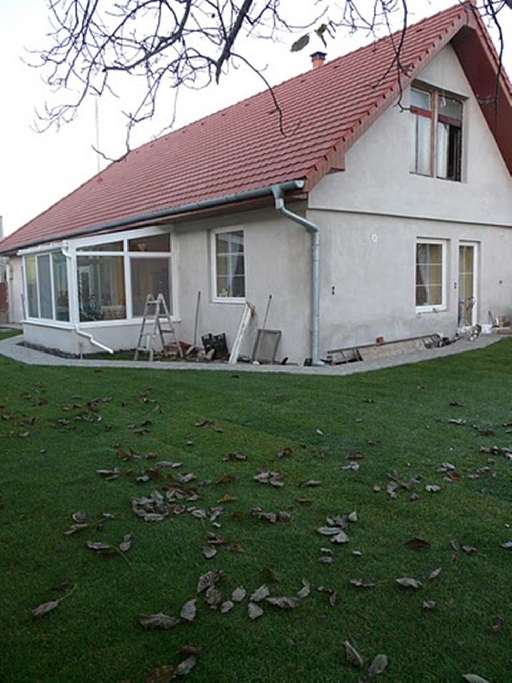 A régi családi házat megörökölve nekilátott a tónyárasdi család az átépítésnek. Bontottak, hozzáépítettek, tetőt cseréltek, fúrtak, faragtak. Telefonon érdeklődtek nálunk az árajánlatkérés és télikertrendelés folyamatáról. A megbeszélt időpontban megjelentünk, sóder és homokhegyek közt az udvaron mértük fel árajánlatra a helyszínt. Akkor még hihetetlennek tűnt, hogy ott valaha egy télikert fog állni – s lám, mégis. A ház körüli munkák még ugyan folytatódnak, így az újabb fotók még váratnak magukra…